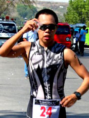 EUGENE SANCHEZ A1: My last half IM distance was 10 years ago so no expectations... plus this is a big field. I just want to enjoy and see old triathlon friends again. Looking forward to seeing my Tri-Locos team mate, Leo Oracion and some of the Manila triathletes I used to race with years ago. I will take it easy and hope to have a good run in the end. A2: I am actually under trained and have not reached my target weight and mileage for this race. With family and work responsibilities, I couldn't train as much as I want to but have managed to at least do a long ride and a long run once a week. I do my swimming on my lunch breaks. Though I am not prepared I think I can still finish this race. A3: I am actually worried with the 21km run more than anything else, don't know how my body would react on that day. That's why I am planning to go easy on the 90k bike... I hope to maintain a certain speed on the bike to reserve some strength for the run. |