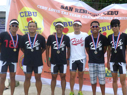 Dalaguete, Cebu - After a dominant display of team strength during the 1st leg of the Island Souvenir's Cebu Loves Tri Team Championships at San Remegio Cebu last November 25,2012, Team Fish 18 vowed to continue their winning ways by fielding in almost the same team at Dalaguete , Cebu for the 2nd leg on February 3, 2013. Despite a massive lead in points with 150 team points as compared to Team Parklane's 64 points and Patt's Tri Team with 32 points , Team athlete Franz Baguio said that they are not leaving things to chance, when asked about this clear lead he said, "we have to maintain our lead with the other teams." Despite being on semi off season & coming off from a 4th overall finish at last month's bohol Timex 226, Franz mentioned that he will still race and give his best shot to help their team.