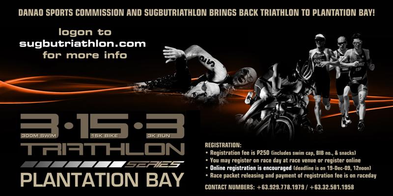 The last leg of 3-15-3 Triathlon (December edition) concludes the triathlon season of the year in Cebu. This marks the thirteenth triathlon in 2009, absolutely a triathlon year for Cebu! The most triathlons so far in local triathlon history! This race is set on December 20, 2009 at Plantation Bay, Lapu-lapu City, Mactan Island. More newbies are expected to participate as the October edition of 3-15-3 Danao Triathlon attracted many.