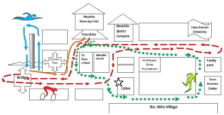 OTHER DETAILS - All Registration will be done on race day. - Free accommodation at the Gabaldon teachers dormitory. (Inform us the day before and how many beds you want to reserve. Please contact Job Cereño.) - Free transportation, two way. The vehicle is an Isuzu Elf (without seats). Going to Medellin is on April 25, 1PM at CCSC pool. Going back to Cebu City will be after the event awarding. - 8:00-9:00 Registration and body marking - 9:00-9:30 Assembly and message from the mayor - 9:30-9:45 Race briefing (Triathlon) - 9:45-10:00 Warm-up - 10AM Race start (Triathlon) - 12:30 Free Fiesta lunch at the Medellin sports complex - 1:15 Race briefing (Duathlon) - 1:30 Race start (Duathlon) - Awarding for both events after duathlon finishes