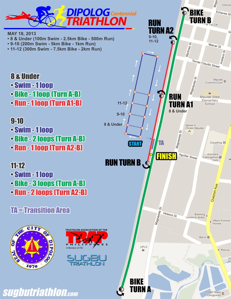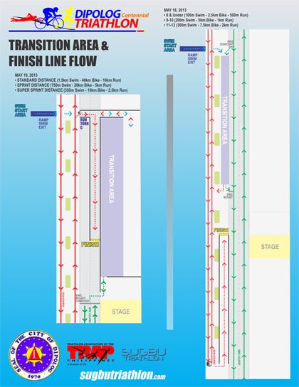 DIPOLOG CENTENNIAL TRIATHLON CLICK IMAGE TO ENLARGE STANDARD/SPRINT/SUPER SPRINT DISTANCE SUPER TRI KIDS TRANSITION AREA AND FINISH LINE FLOW