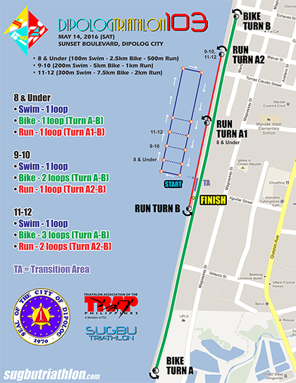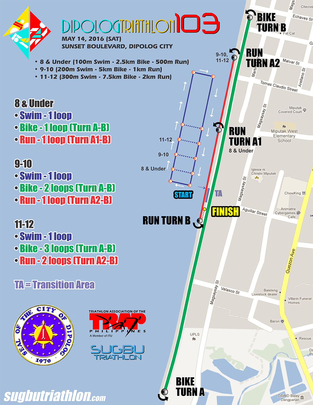 DIPOLOG TRIATHLON 103 CLICK IMAGE TO ENLARGE LONG, SPRINT, FUN DISTANCE & STK 13-15 SUPER TRI KIDS TRANSITION AREA & FINISH LINE FLOW