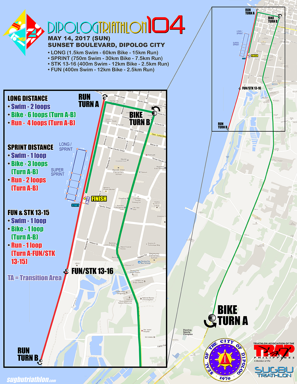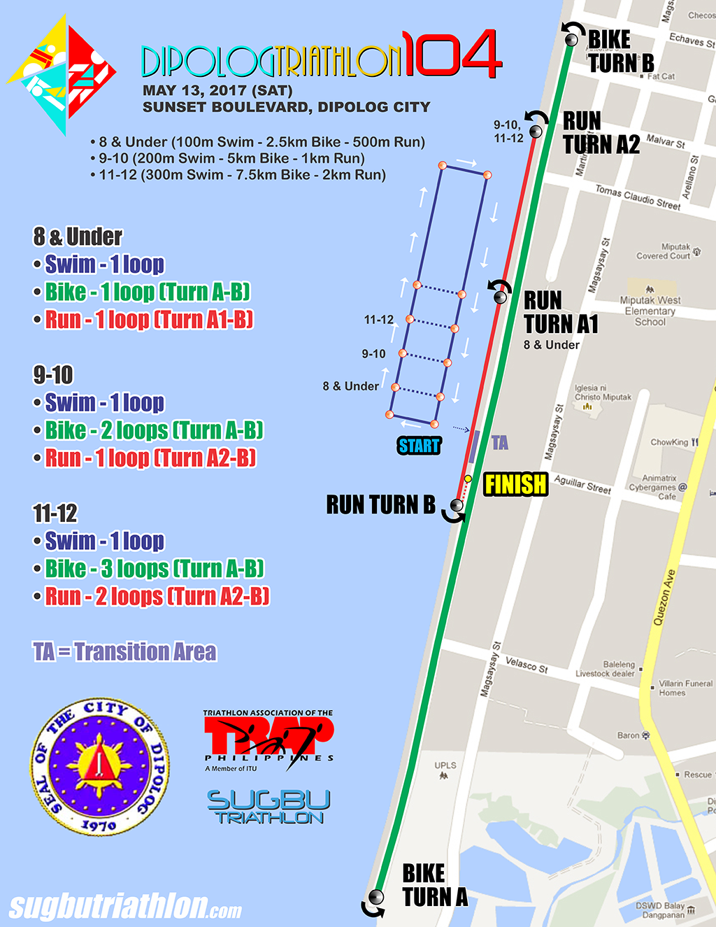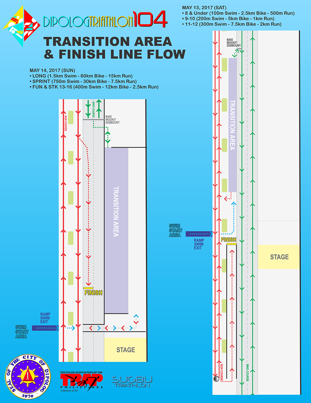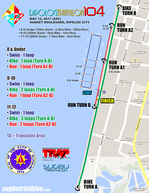 DIPOLOG TRIATHLON 104 CLICK IMAGE TO ENLARGE LONG, SPRINT, FUN DISTANCE & STK 13-16 SUPER TRI KIDS TRANSITION AREA & FINISH LINE FLOW